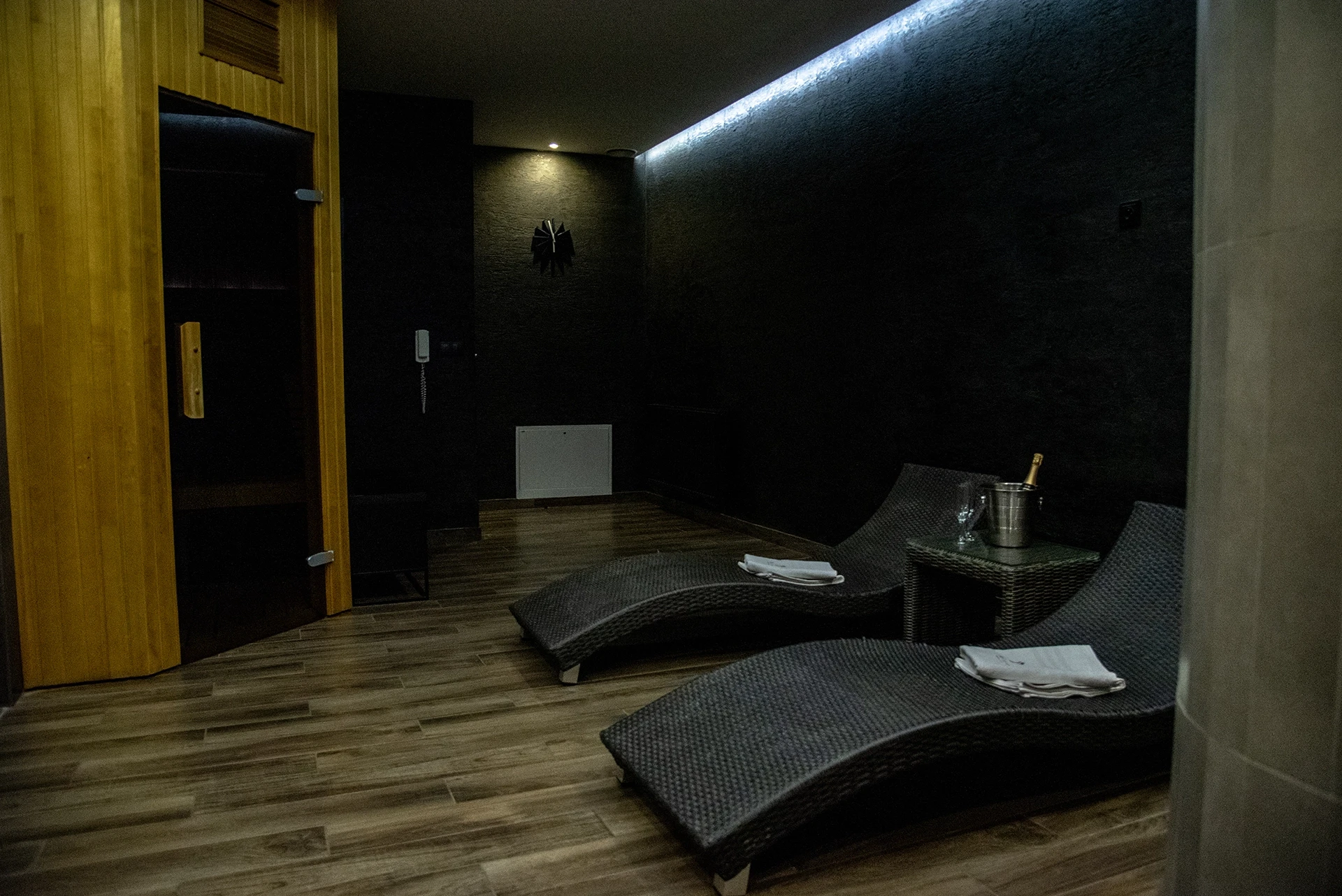 Relaxační zóna nabízí dostatek prostoru pro odpočinek mezi jednotlivými procedurami. Ideální pro klidné chvíle ve dvou i menší skupinu.